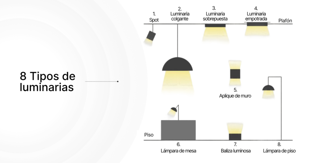 En un proyecto de iluminación estratégico, se suelen combinar diferentes tipos de luz para cubrir distintas necesidades. Los principales son: