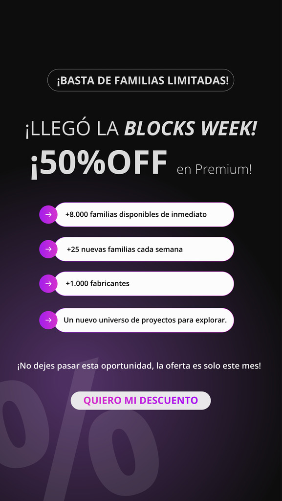 Y aquí, en Plugin Blocks, tienes todo lo que necesitas para tu proyecto. Más de 6.000 familias BIM listas para que las uses como quieras y logres conquistar a tus clientes.
