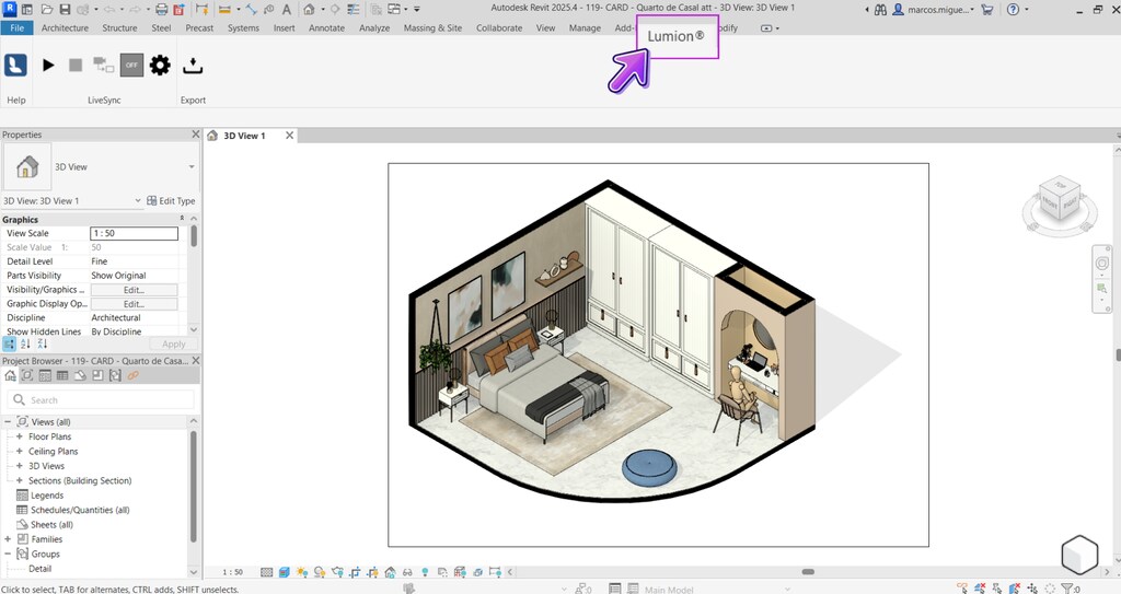 Pronto! Agora o Lumion LiveSync estará funcionando perfeitamente. Para ver a renderização, é só voltar no Lumion.