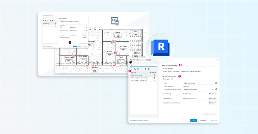 O Revit 2027 introduz um sistema de numeração baseado em regras, que permite criar templates com filtros baseados em parâmetros, prefixos personalizados, sequências e formatações específicas.